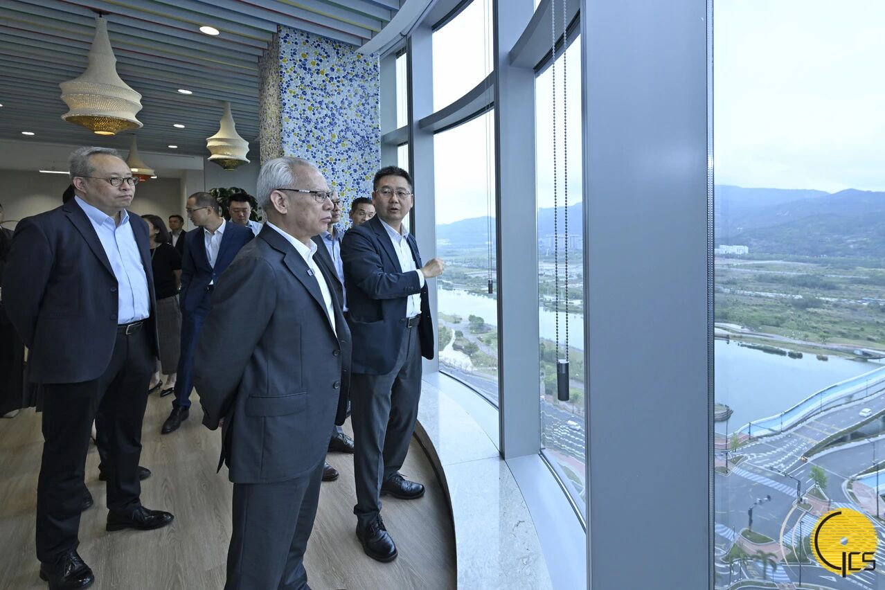 工作会议前,岑浩辉在合作区进行考察调研。他首先到访中国—葡语(西语)国家经济贸易服务中心,听取该中心运作情况及发展计划的汇报,并在中心所处大楼的高处俯瞰澳门大学横琴合作区校区及广珠(澳)高铁横琴站选址,了解项目推进情况。岑浩辉亦分别到横琴国际数智人才培养基地及琴澳创新产业园调研。