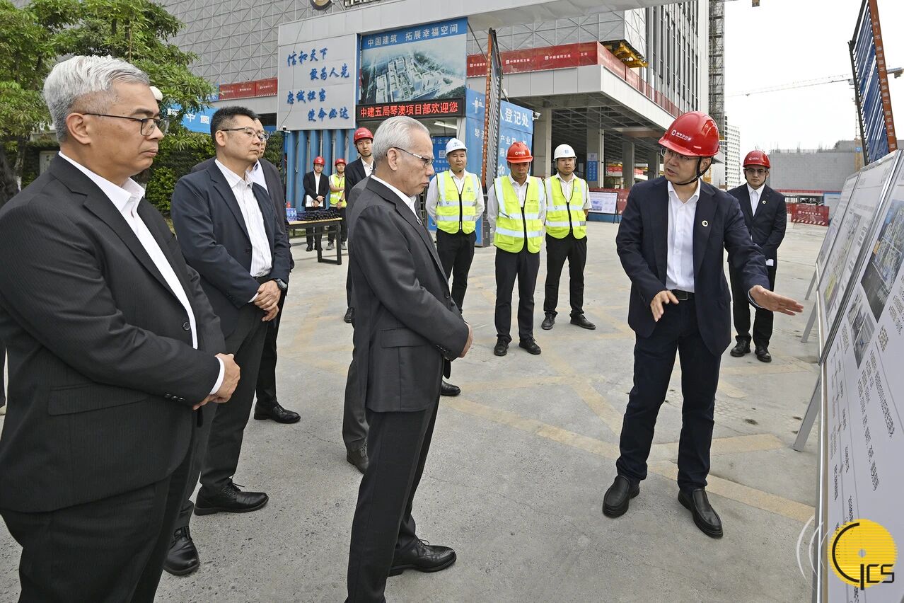 岑浩辉俯瞰建设中的澳门大学横琴合作区校区,了解项目推进情况