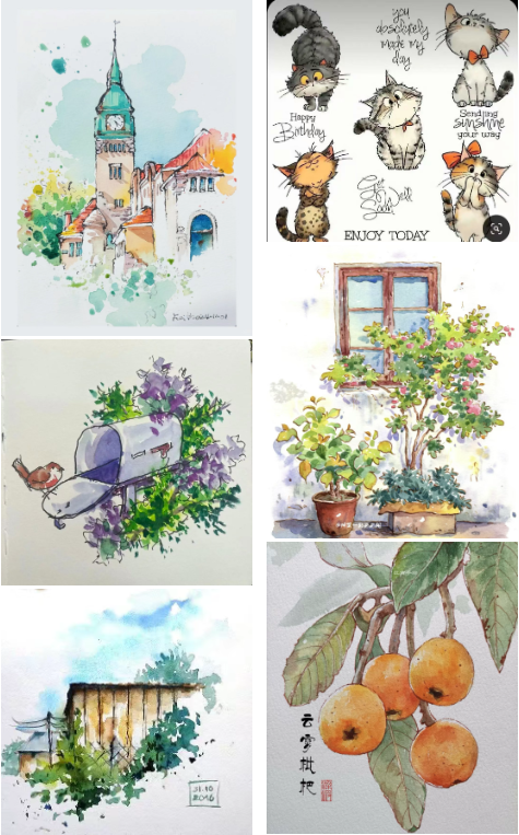 “钢笔画线,水彩铺色” ,钢笔淡彩画在五分钟内就能把那个瞬间的 “光”与“色” 锁在纸上,让你在快节奏的现代生活中,依然能优雅地停下来,用线条去思考,用色彩去感受。速写记录身边的美好。