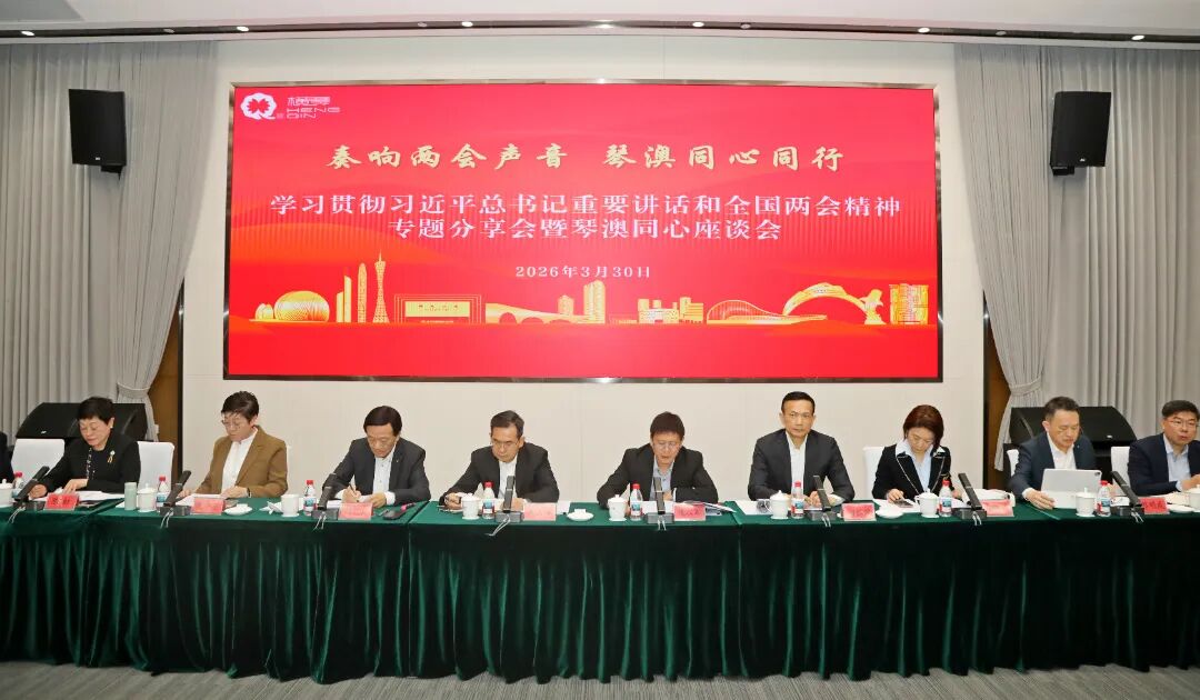 3月30日,由省委横琴工委、省委横琴工委统一战线工作领导小组指导,省委横琴工委党建工作处主办的“奏响两会声音 琴澳同心同行”——学习贯彻习近平总书记重要讲话和全国两会精神专题分享会暨琴澳同心座谈会在横琴粤澳深度合作区举行。
