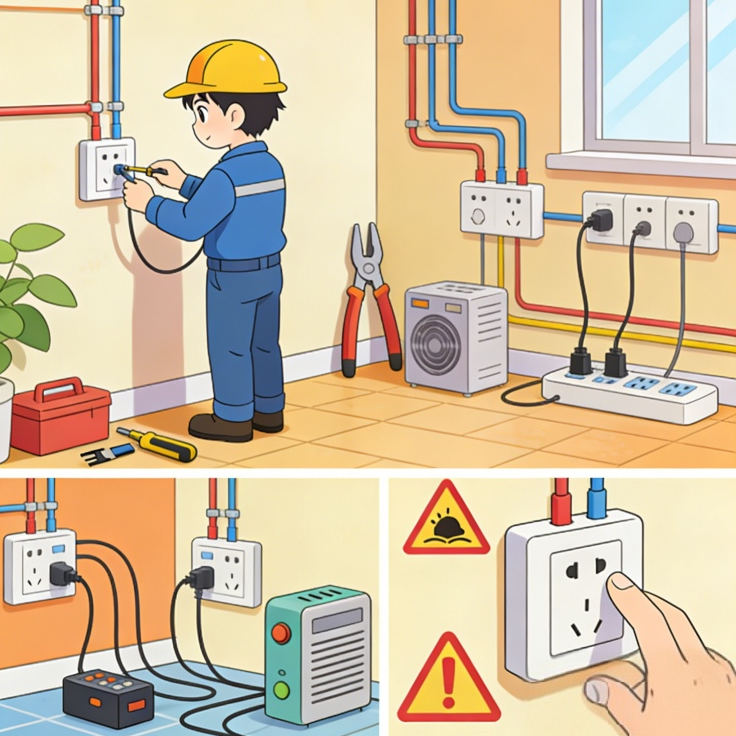 三、规范电气线路及插座使用,防范线路隐患。定期检查家中电气线路,若发现电线老化、破损、裸露等情况,及时请专业电工更换,线路敷设需做好穿管保护,切勿私拉乱接。不将多个大功率电器连接在同一个插座上,避免线路超负荷运行;不串联使用插排,不用湿手触碰插座、开关,插座遇水跳闸后切勿再次使用。