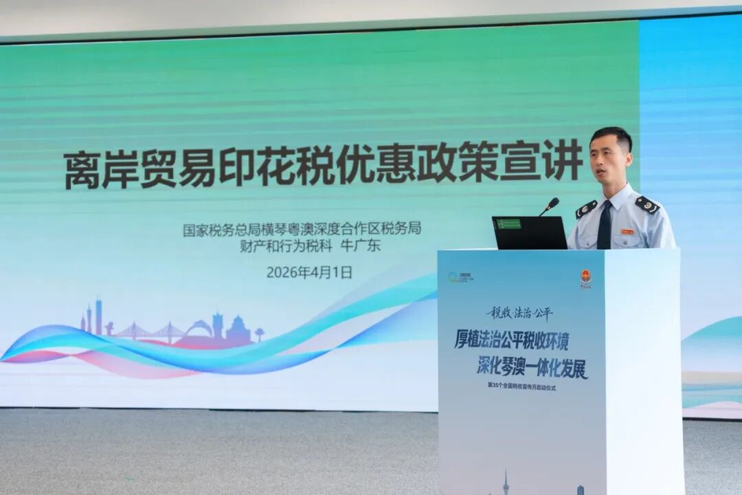 4月1日,国家税务总局横琴粤澳深度合作区税务局以“厚植法治公平税收环境 深化琴澳一体化发展”为主题举行第35个全国税收宣传月启动仪式。