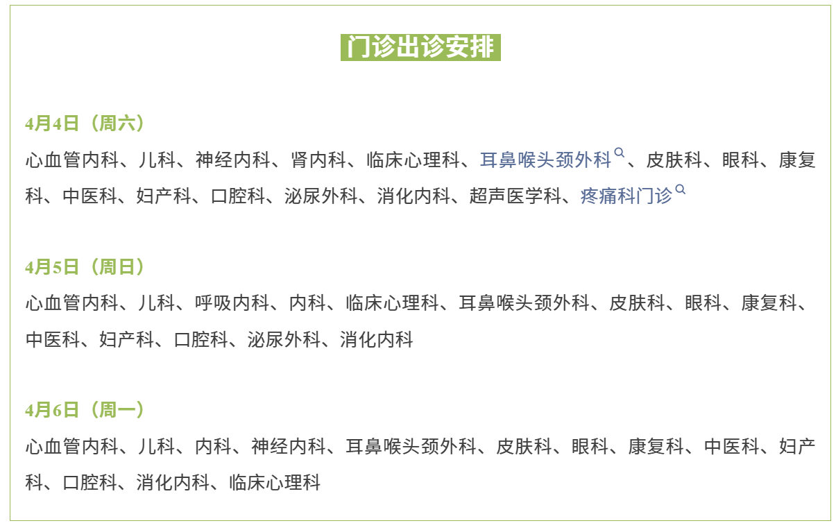 ✦4月4日-4月6日门诊有限放号开诊;
