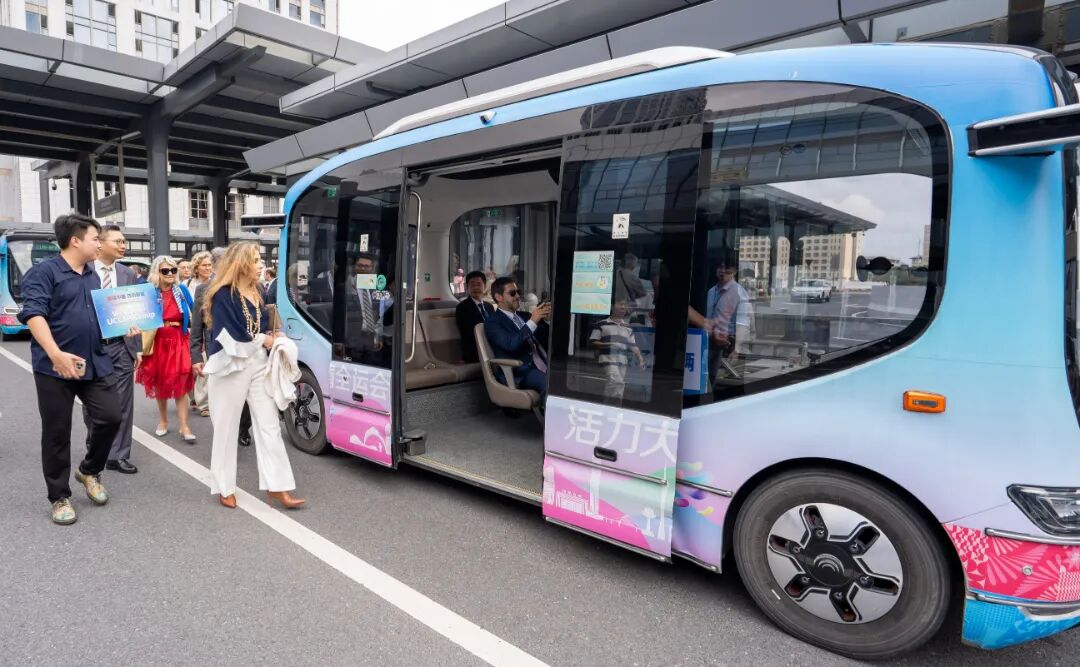 代表团先后考察了中国—葡语(西语)国家经济贸易服务中心(简称“中葡经贸中心”)、横琴国际数智人才培养基地、珠海一微科技股份有限公司及大横琴综合管廊,并亲身体验了合作区的自动驾驶小巴。