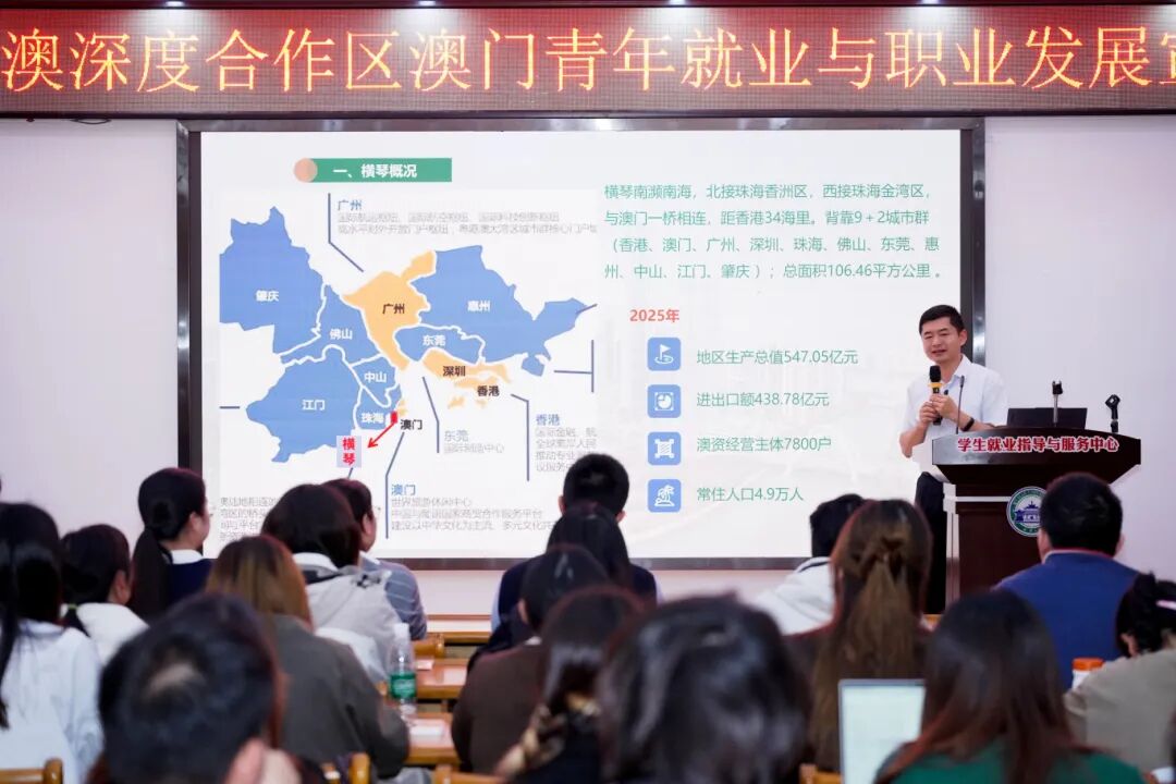 在武汉大学专场举办前,合作区面向在湖北高校就读的澳门青年开展合作区职业发展环境推介,深入解读了合作区支持澳门青年就业相关政策。
