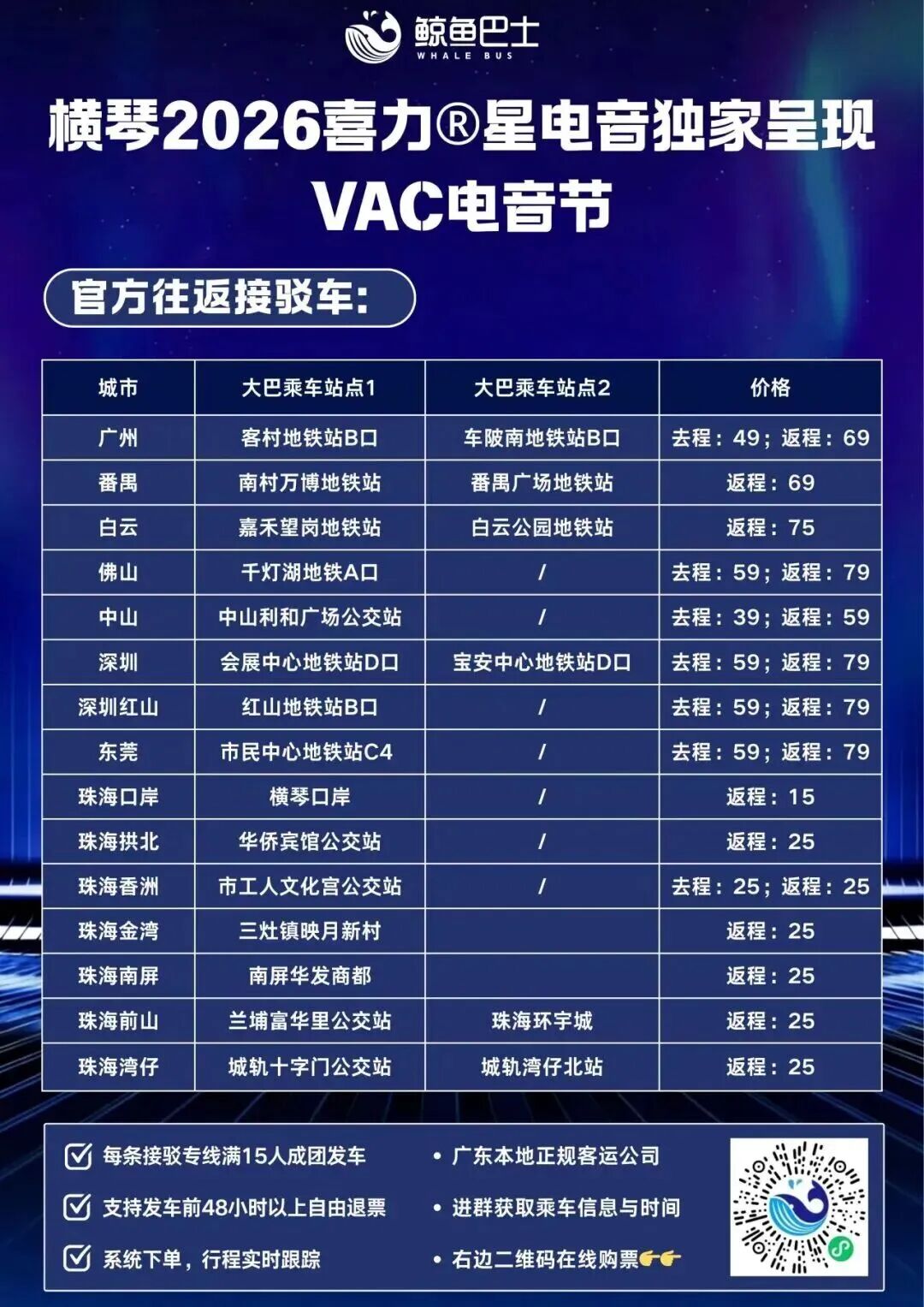 详情扫描海报二维码,跳转查看及购买对应接驳大巴路线。