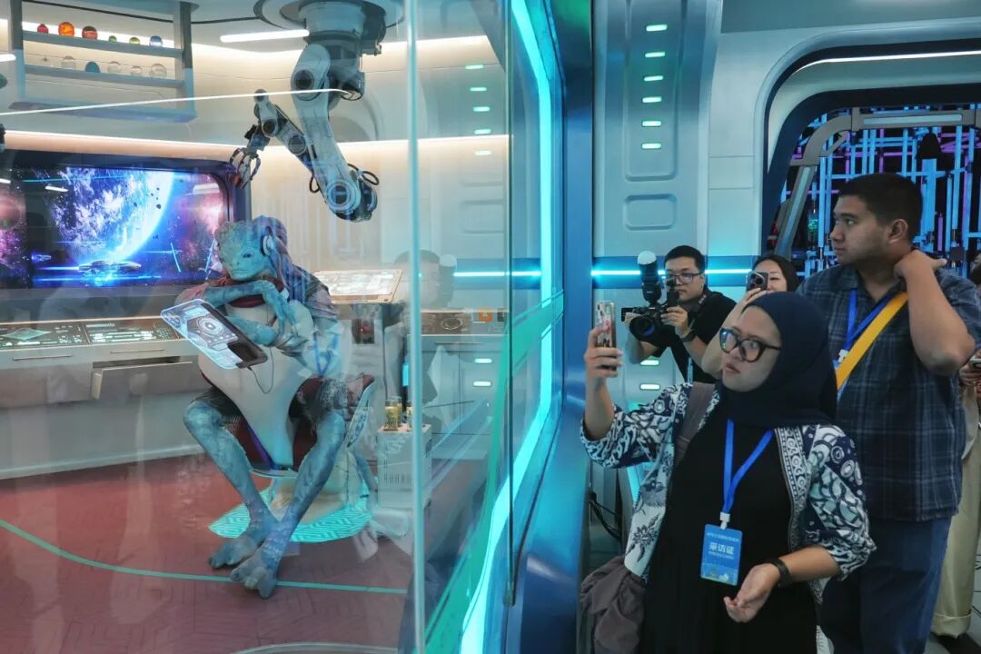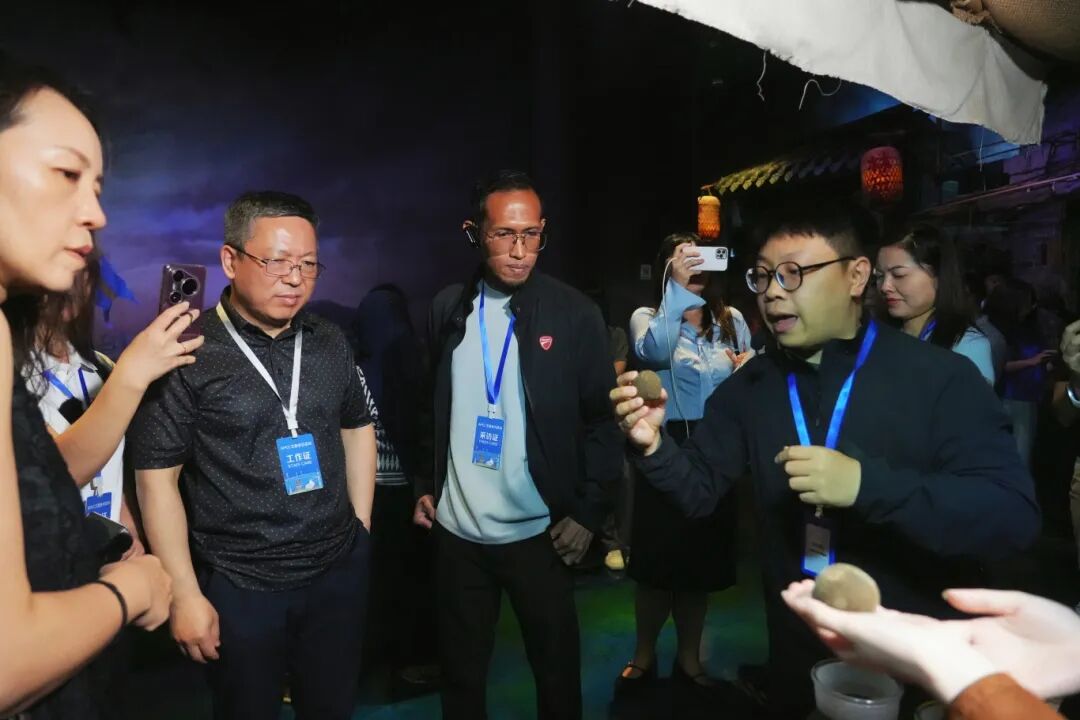 这座建筑面积约3.6万平方米的场馆,由五获奥斯卡金像奖的影视特效大师、新西兰维塔工作室联合创始人理查德•泰勒爵士领衔创意设计,以声光电和巨物雕塑重构了中医药的起源与传承故事。从“盘古开天”的穹顶投影,到“女娲造人”的巨型仿真雕塑,再到遍布活体药用植物的神农花园,媒体团成员穿梭其间,仿佛步入了一个东方草木版的“阿凡达”星球。