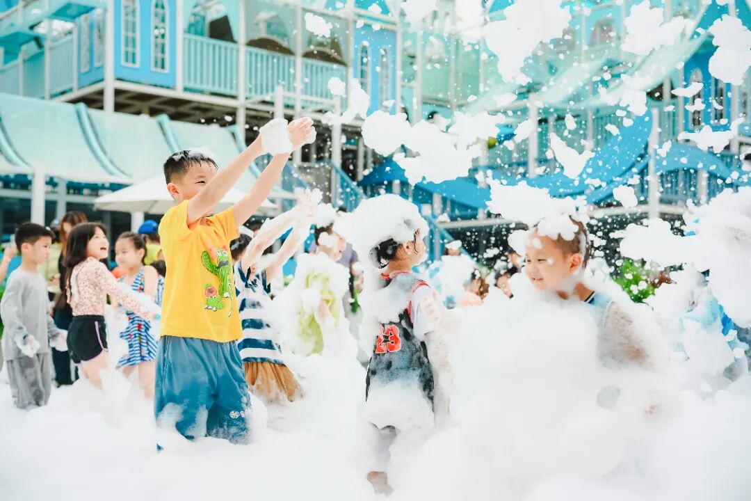 白天,泡泡鱼NPC随机出没,喷吐梦幻泡泡,邀请游客一起共舞,“浑水摸鱼”活动设置充气大水池,游客可以卷起裤腿一起抓鱼,另外还有“龙虾漂浮”“超级泡泡秀”等亲水活动轮番上阵,让亲子家庭尽享湿身清凉。