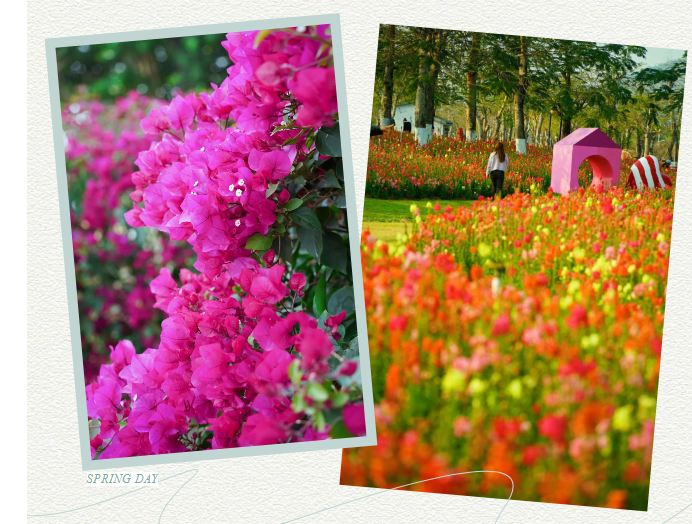 金鱼草花、簕杜鹃等各种应季花朵竞相绽放,组成一片花海,仿佛把人带入了一幅色彩斑斓的油画世界。