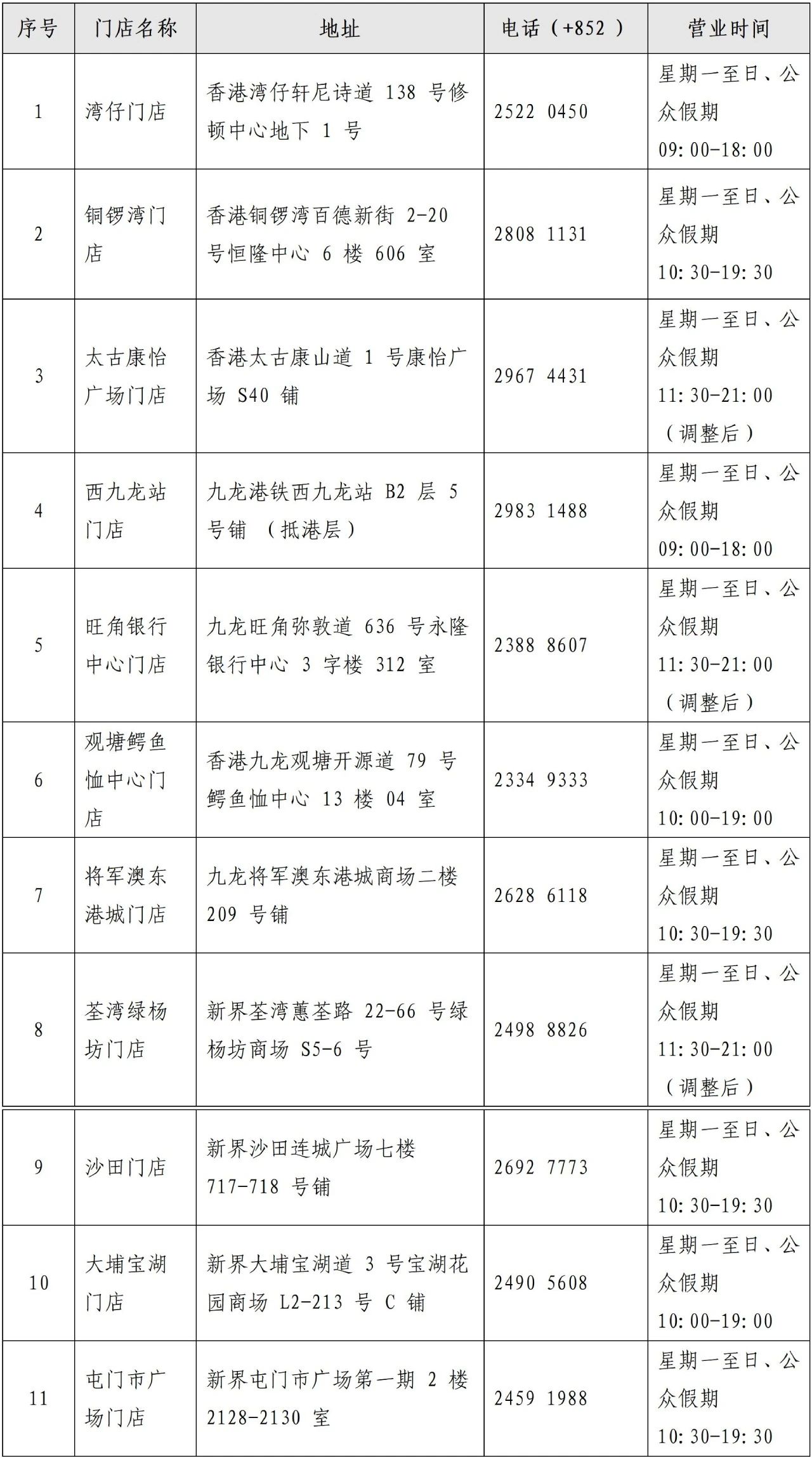 香港中国旅行社11家网点信息(仅销售香港赛区门票)
