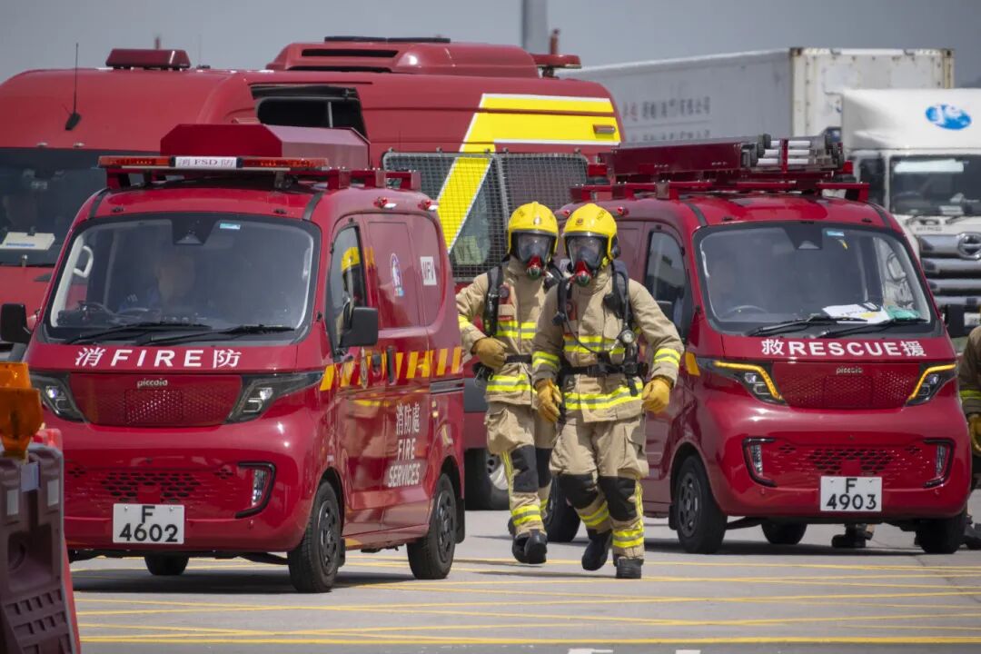 模拟香港赛段有小车“失火意外”进行抢救