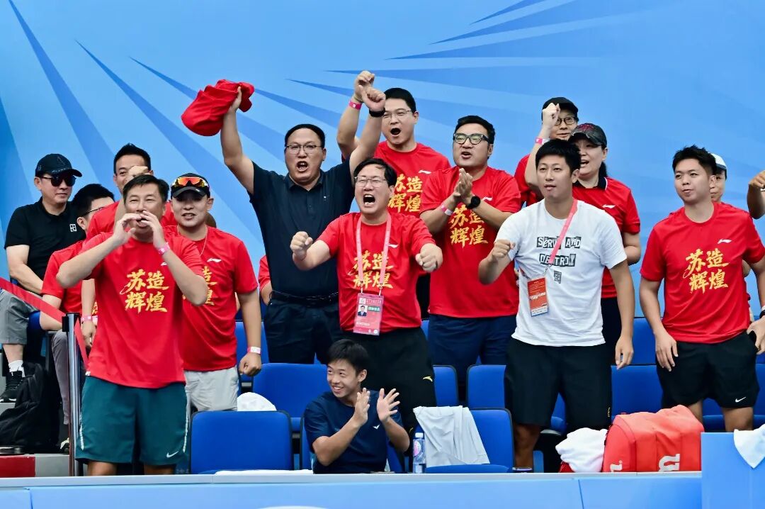 江苏队选手徐旷清在单打比赛中回球。他2比0战胜河南队选手张天汇。最终,江苏队2比0战胜河南队,晋级下一轮。