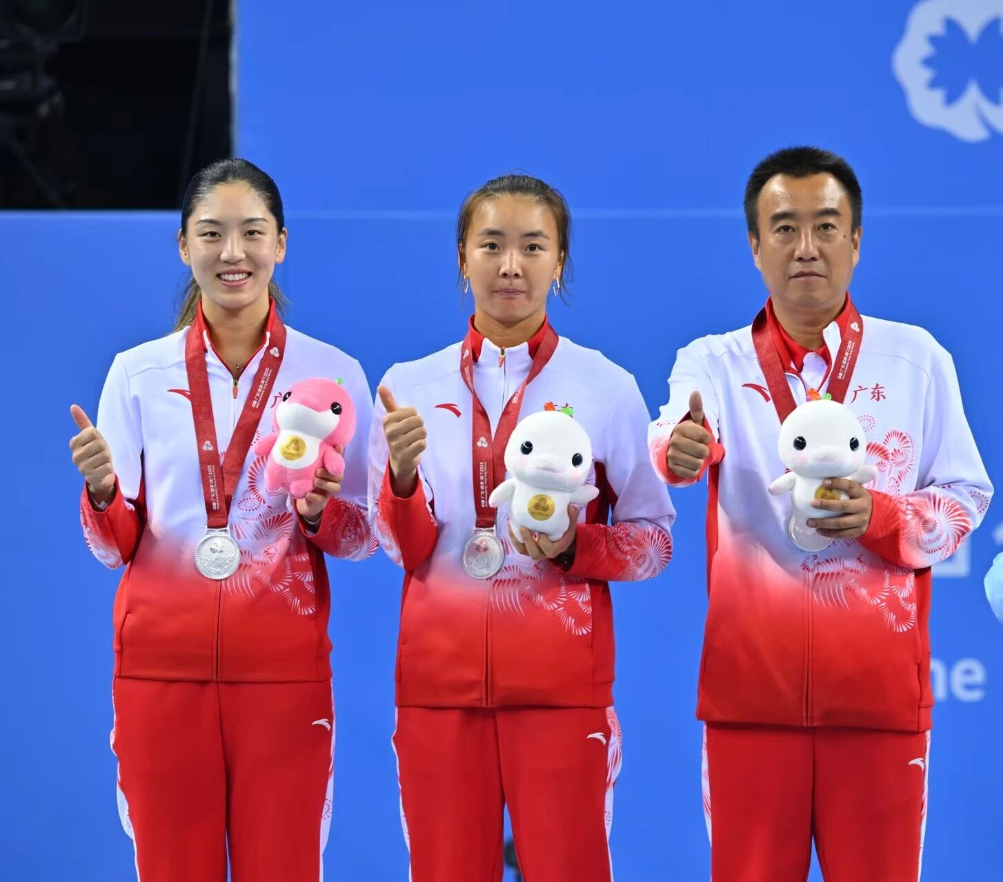 上届全运会上,王雅繁/蒋欣玗获得了女双银牌,这一次在横琴,在十五运会的舞台上,两人终于夺得了这枚宝贵的全运会女双金牌,赛后两人非常激动,紧紧拥抱在了一起。王欣瑜在本届全运会上则获得了女双银牌、女单铜牌一共两枚奖牌。