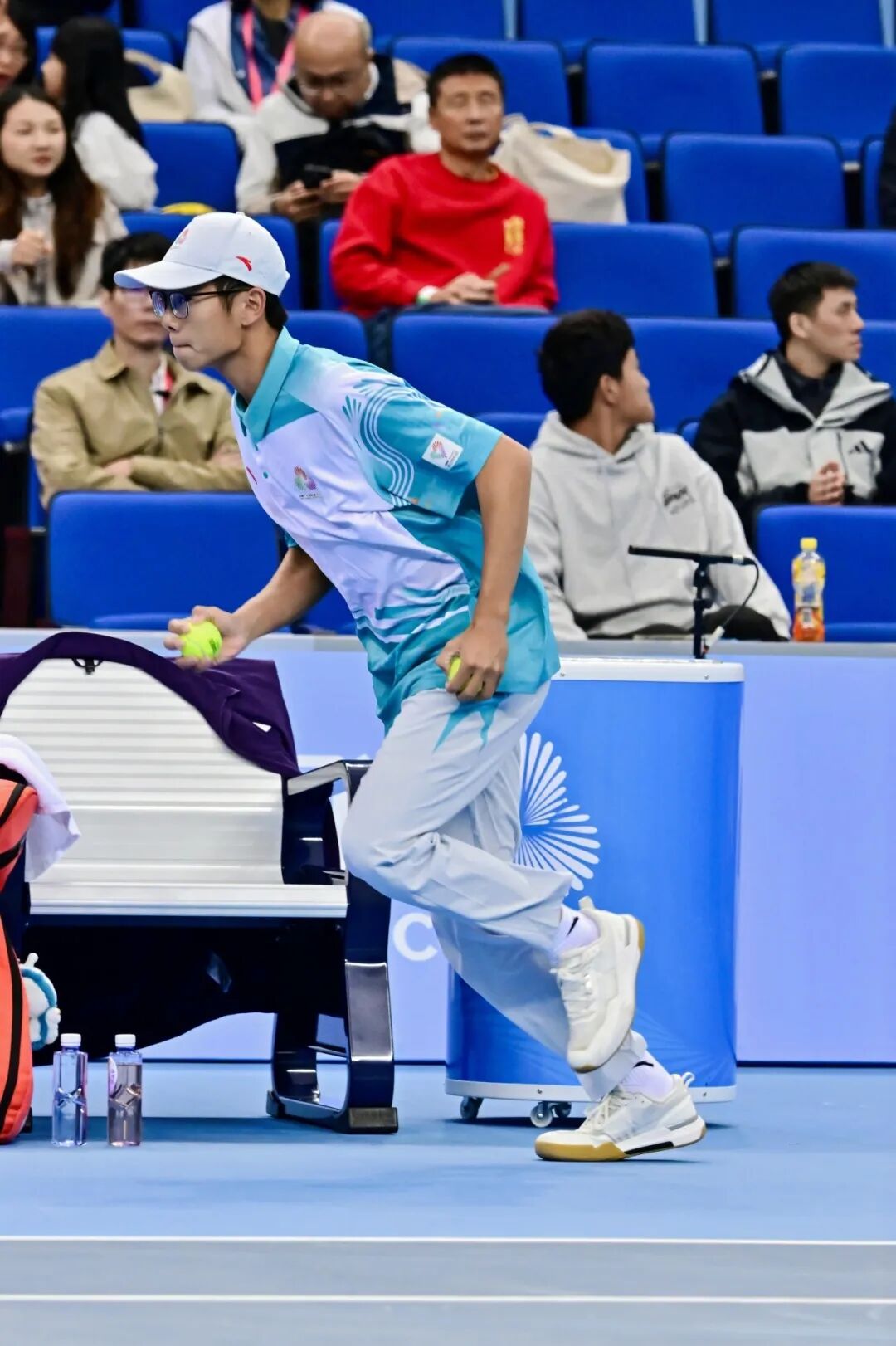 在19日的男单半决赛中,一记网球不慎飞出场外。陈宇涵迅速翻越场边围栏,向在场观众取回球,待该回合结束后立即返回场内,将球精准传递给运动员,全程并未影响比赛节奏。“我们是保障赛事顺畅运转的‘螺丝钉’,虽然不在聚光灯下,但每一个细节都不能马虎。”陈宇涵说。
