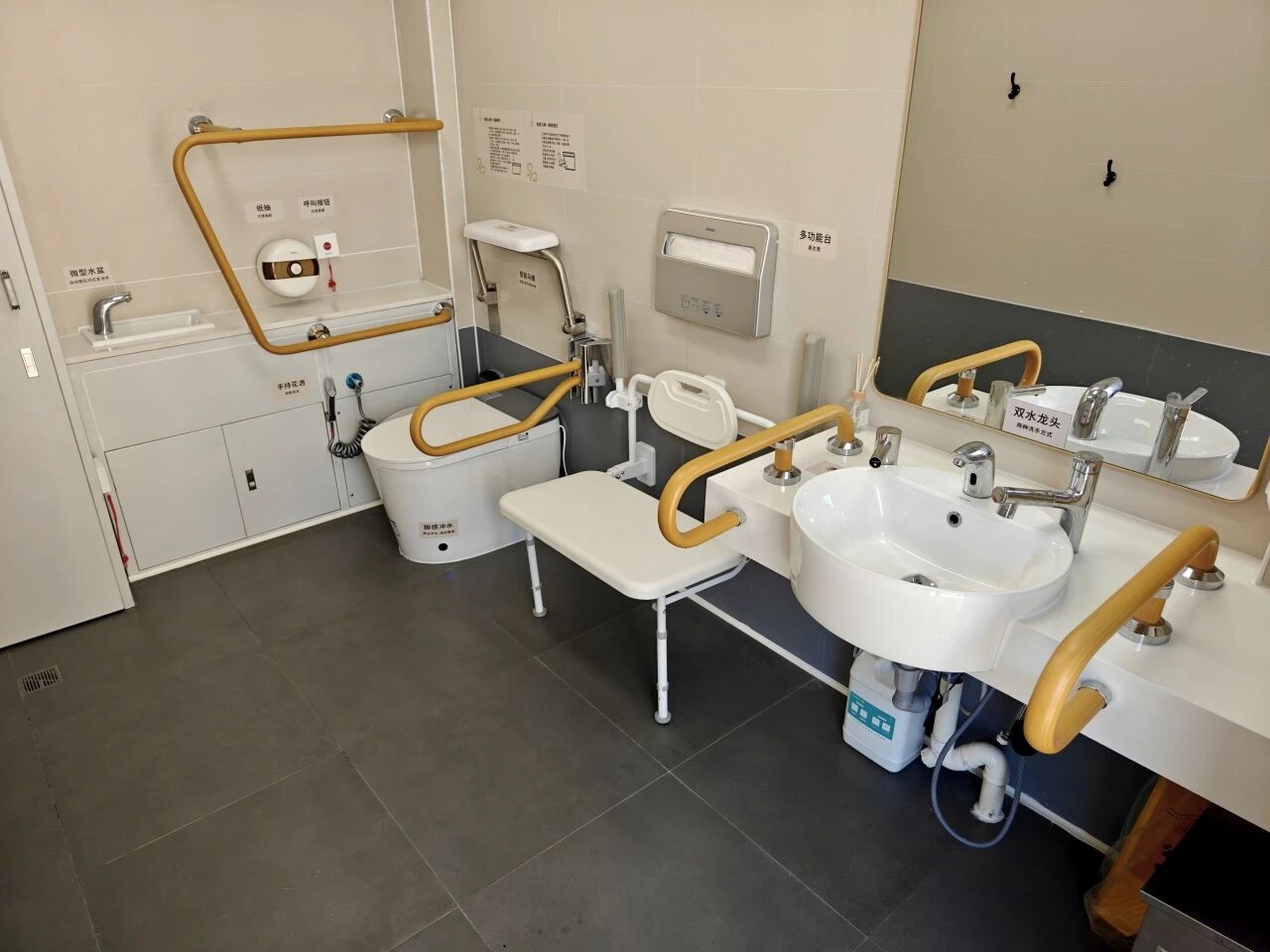 在硬件上,场馆基础设施完成无障碍适配,包括无障碍通道、盲道布局、无障碍停车位、无障碍洗手间、无障碍电梯等,确保轮椅运动员通行、训练、竞赛全程顺畅。还特别增设了临时无障碍卫生间,同时升级安防系统,兼顾安全保障与使用便利。