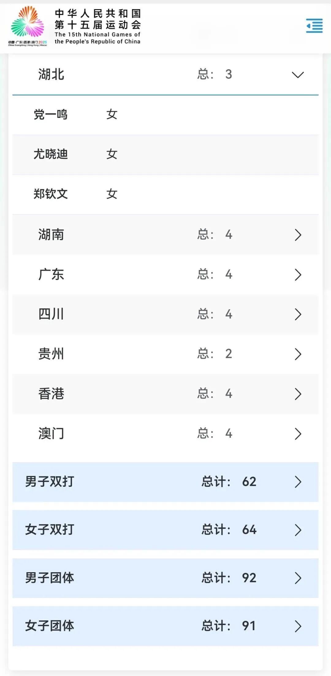 赛程显示,女子团体和男子团体金牌将于11月12日率先产生,女子双打和男子双打金牌将于11月19日决出,女子单打和男子单打金牌将会在11月20日诞生。