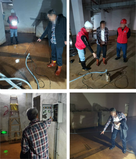 2024年10月26日8时许,王某根带领胡某玉等4名作业人员前往富盈商务度假中心负二层(1号楼区域)清扫垃圾、积水。为加快清扫进度,王某根从负二层1/b-G轴交1e-8轴处取得不锈钢低水位排水泵(下称涉事水泵),将涉事水泵放置于排水沟内,并从距离作业点6.47m的电箱处临时接电,经插线板向涉事水泵供电。