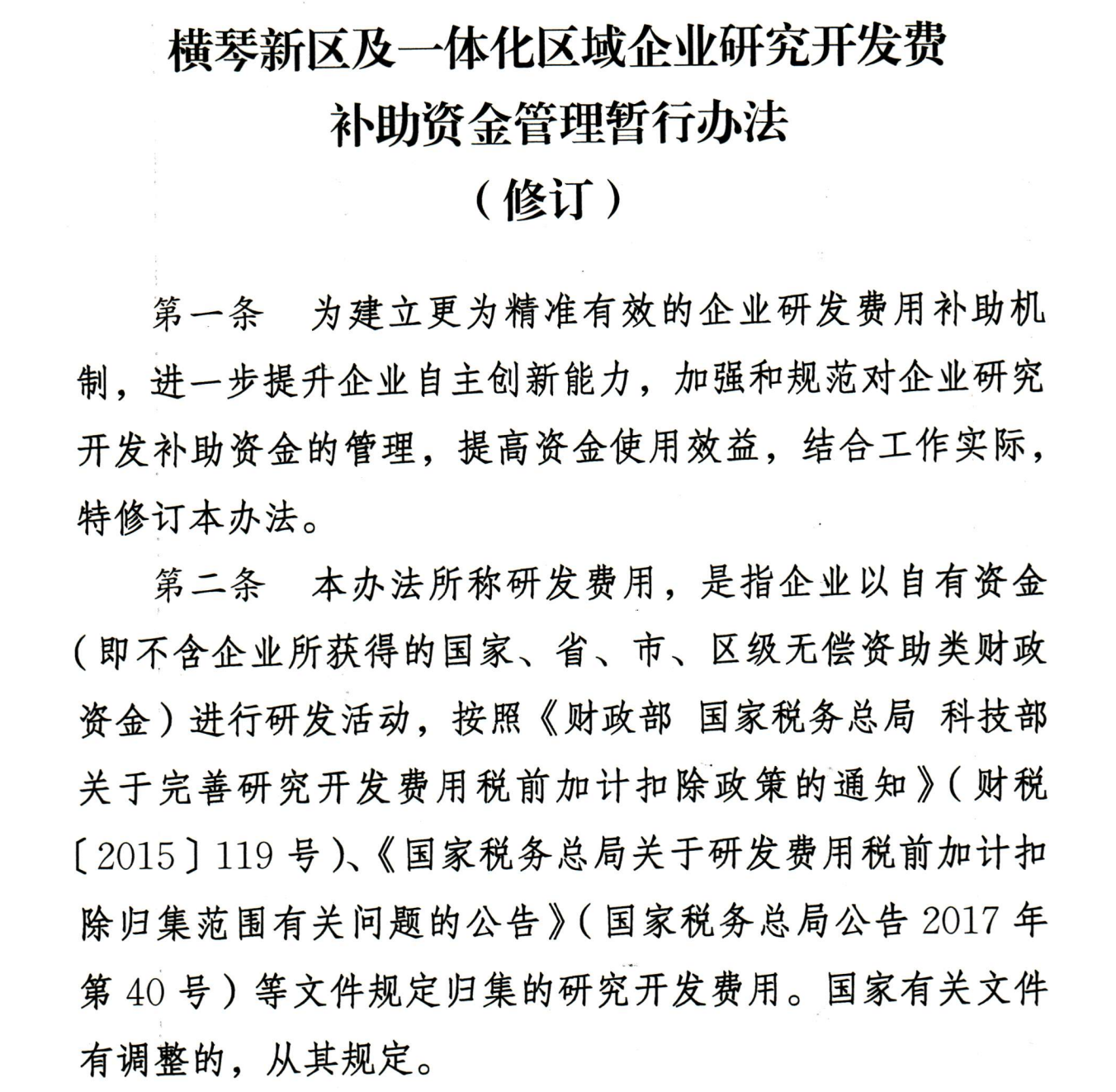 横琴新区及一体化区域企业研究开发费补助资金管理暂行办法(修订)政策解读