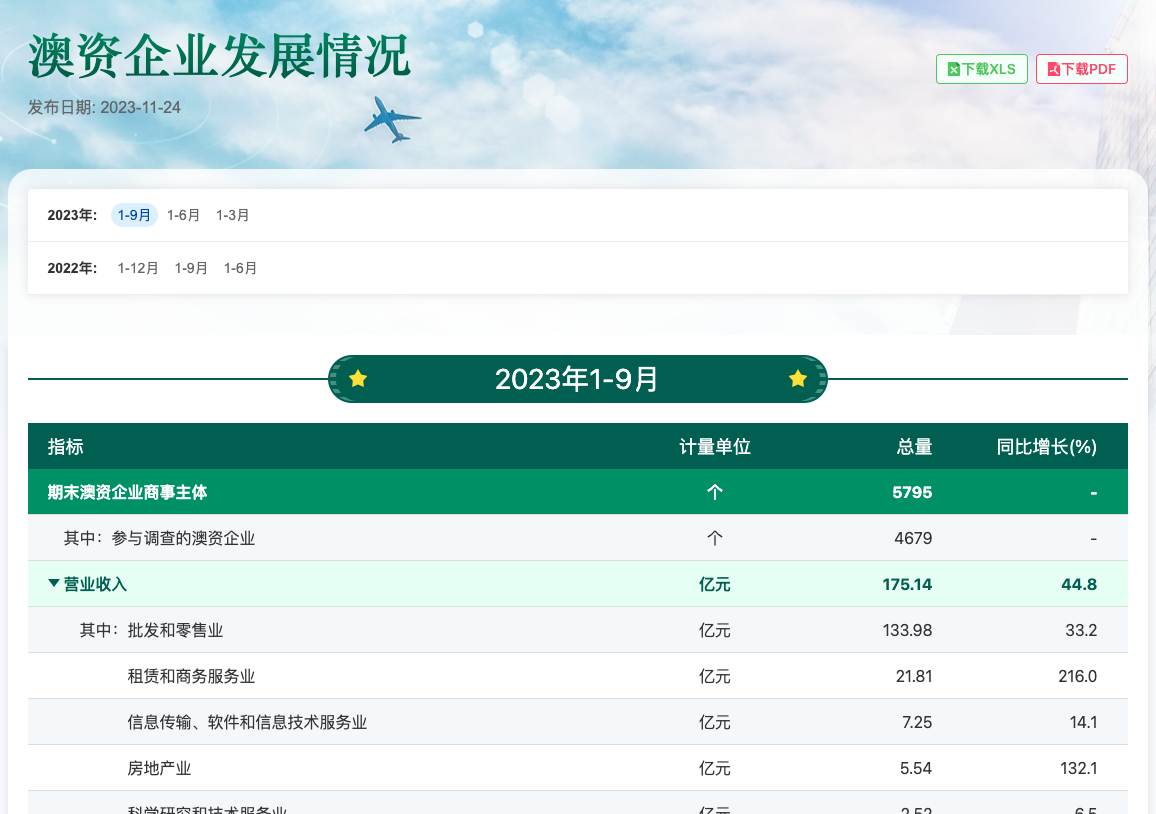 1-9月澳资企业发展情况