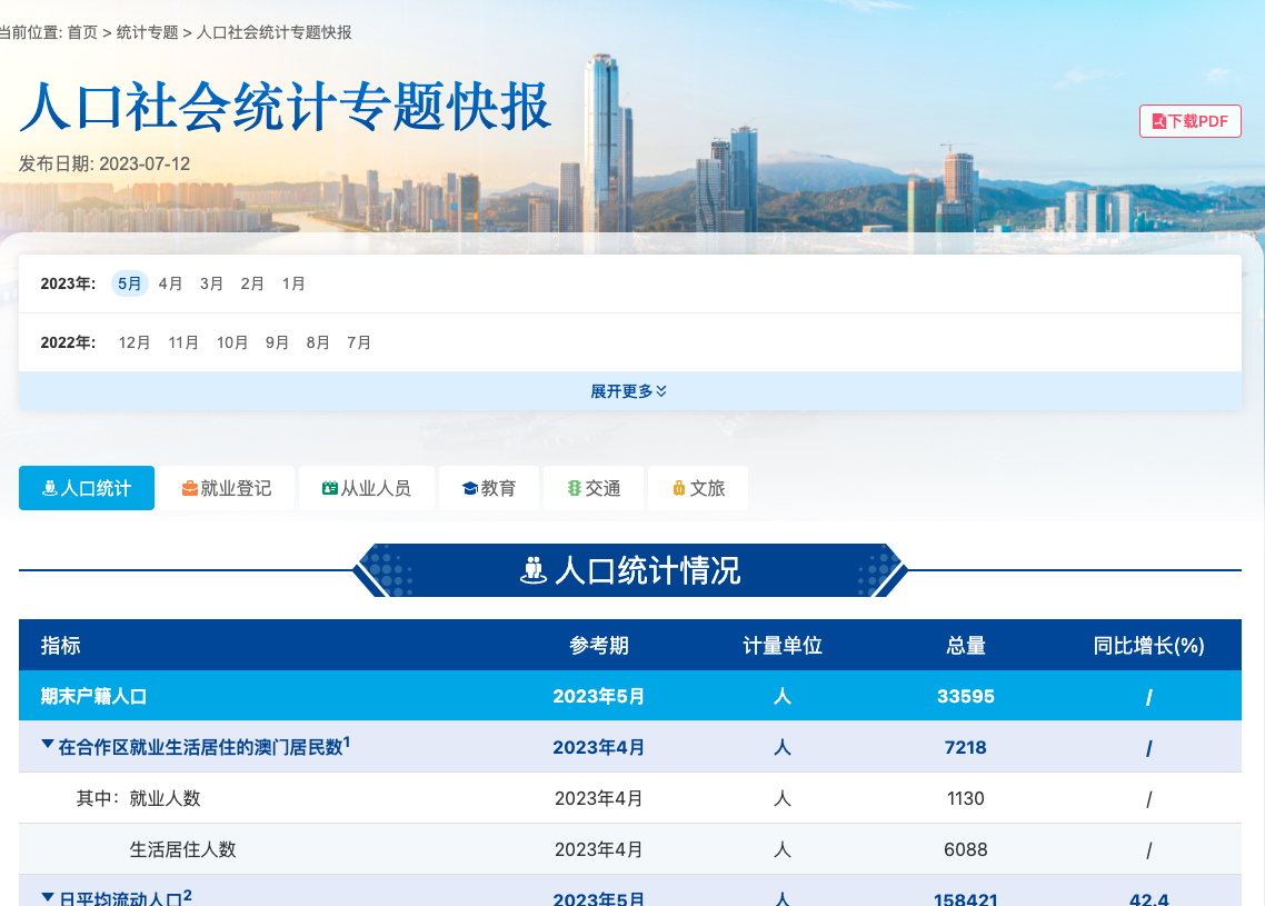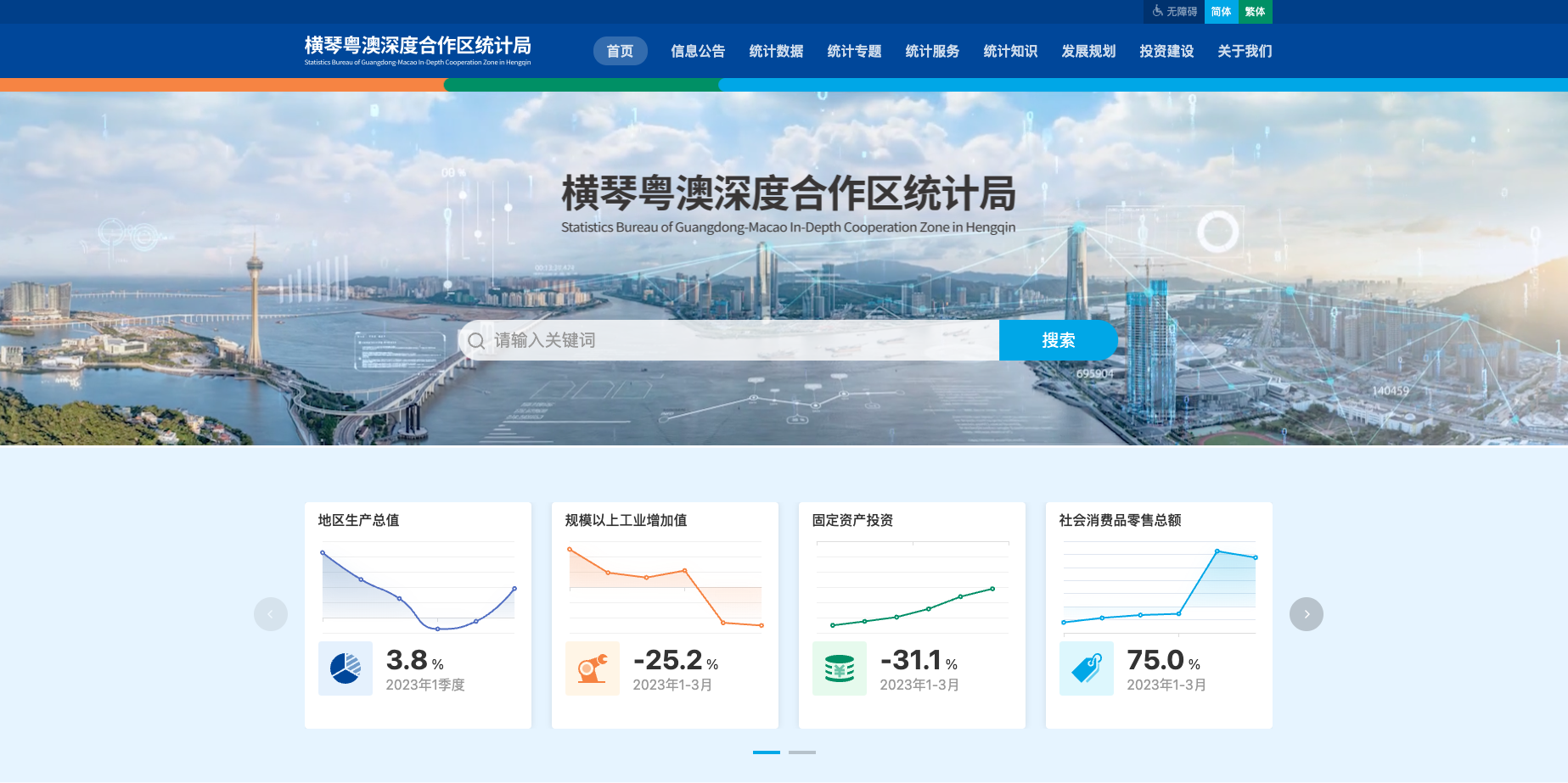 5月5日,横琴粤澳深度合作区统计局官方网站改版上线,用更生动的可视化展示、更灵活的操作交互设计、更美观的网站界面、更丰富的数据信息服务合作区的信息需求者。今年年初,为贯彻落实广东省省高质量发展大会精神和合作区关于高质量发展的工作要求,合作区统计局以“高质量统计服务高质量发展”为宗旨,立足合作区数据需求者所需,通过“小切口”,带来“大变化”,打造互动性更强、内容更丰富、用户获得感更高的统计发布平台。