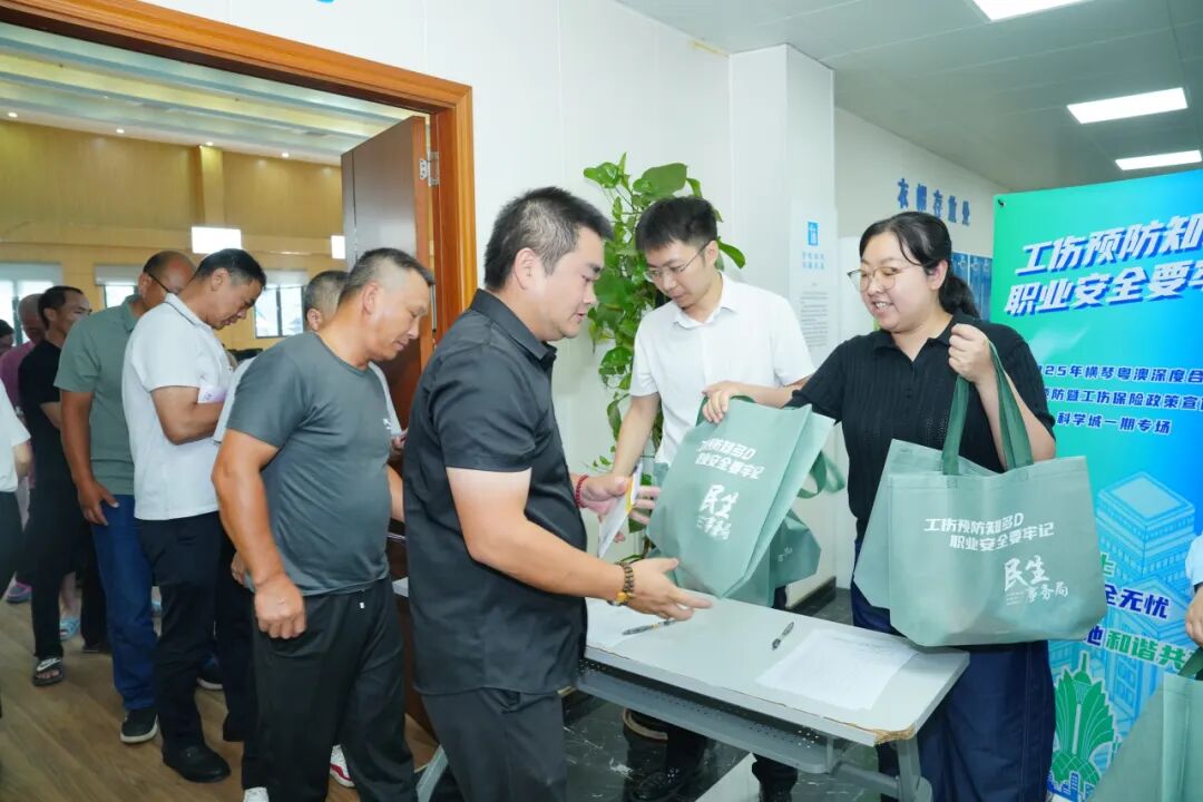 为深入落实《广东省工伤预防五年行动计划实施方案》,2025年上半年,横琴粤澳深度合作区民生事务局以“工伤预防知多D,职业安全要牢记”为主题,联动企业、协会及专业机构走进重点工地,共同开展了四期系列工伤预防宣传活动,累计培训建筑工人279人次,派发政策手册、清凉礼包等物资381份,推动工伤预防知识从“入耳”到“入心”,为合作区劳动者权益保障注入新动能。