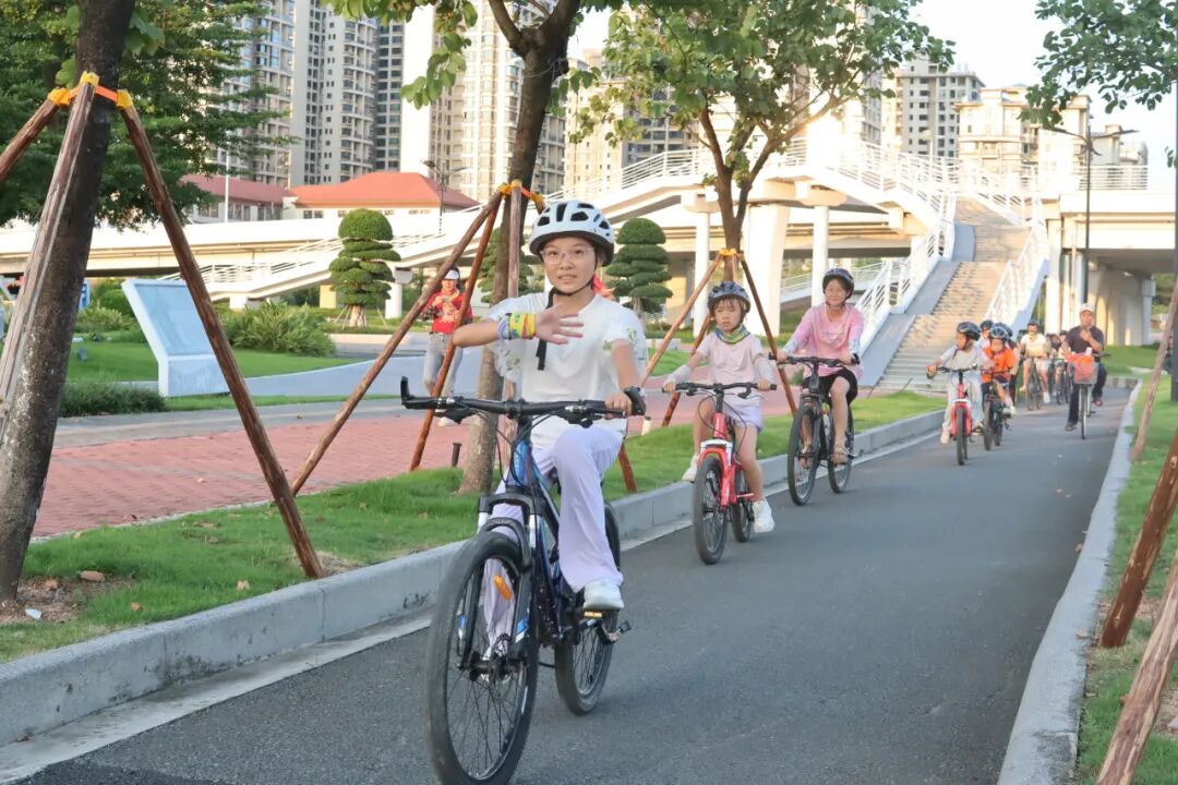 随后,在10名横琴民生志愿者的陪同下,孩子们沿天沐河绿道进行实地骑行体验。