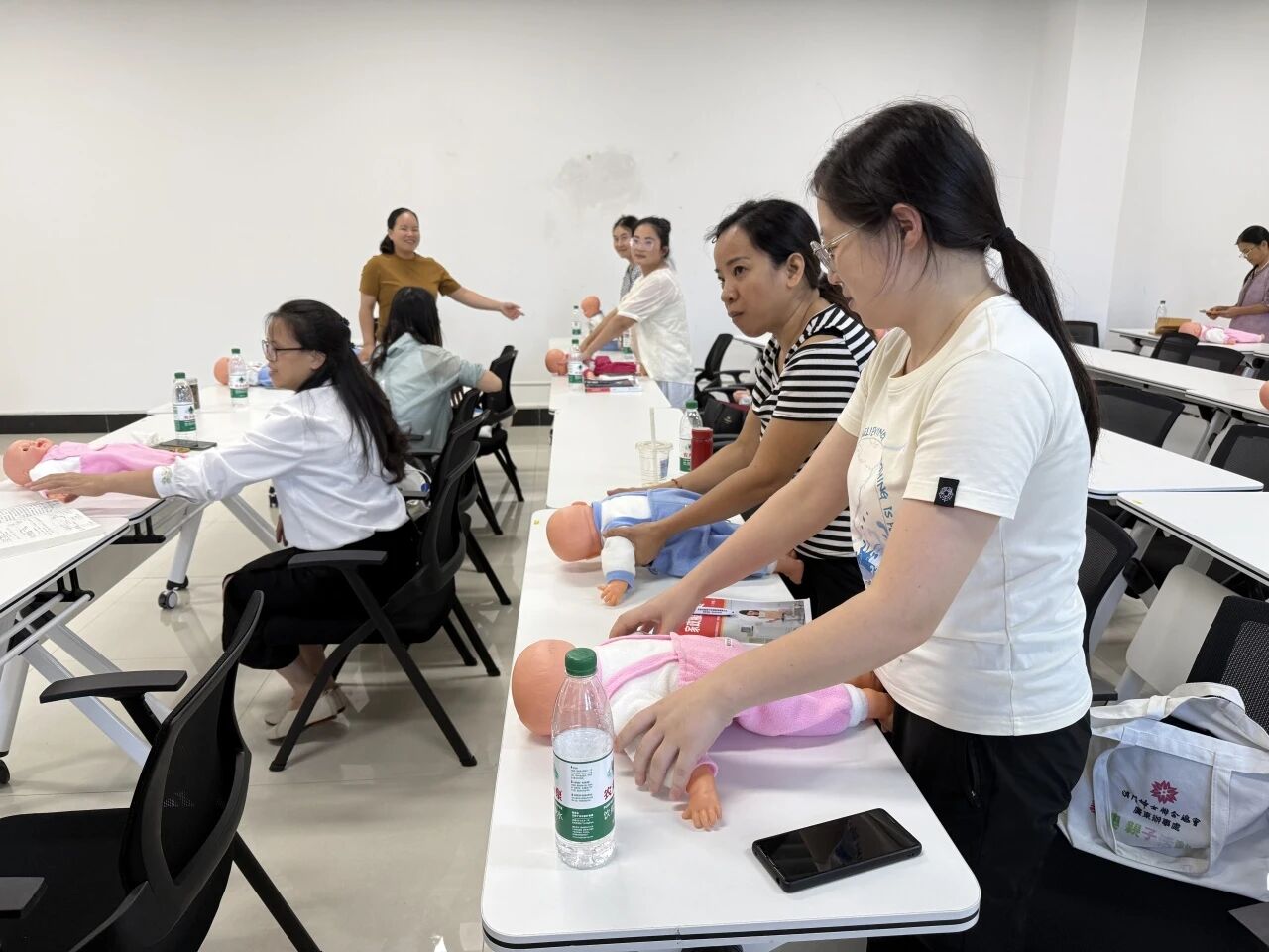 学员们通过理论学习与实操演练相结合的方式,全面掌握了母婴护理的专业知识。在哺乳、照护、膳食制作等关键实操环节,授课老师结合家庭实际场景,细致讲解操作要点,耐心演示规范步骤,并对学员提出的问题给予专业、实用的解答与指导。