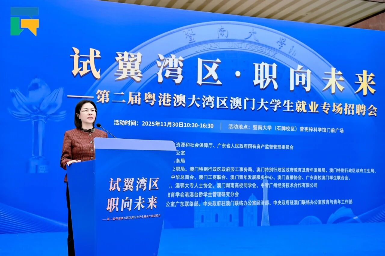 许凤梅在致辞中表示,合作区紧扣促进澳门经济适度多元发展主线,致力于为澳门青年尤其是八千多名在内地高校就读的澳门学子搭建精准高效的就业服务平台。合作区于2025年2月起实施《横琴粤澳深度合作区支持澳门青年就业暂行办法》向符合条件的澳门青年和聘用澳门青年的用人单位发放补贴和奖励,通过企业人才的双向激励帮助澳门青年在合作区获得更广阔的职业发展空间,诚挚期待更多青年学子走进合作区,在融入国家发展大局中实现个人价值。